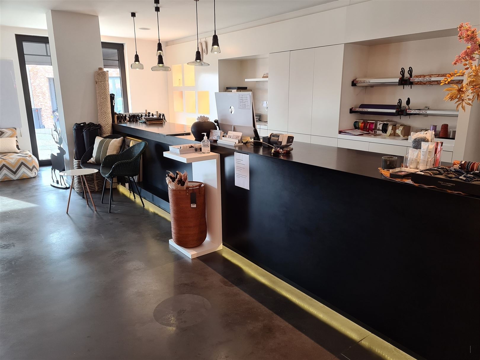 Volledig afgewerkte winkel van ±190m² op het gelijkvloers met apart sanitair en kitchenette.
