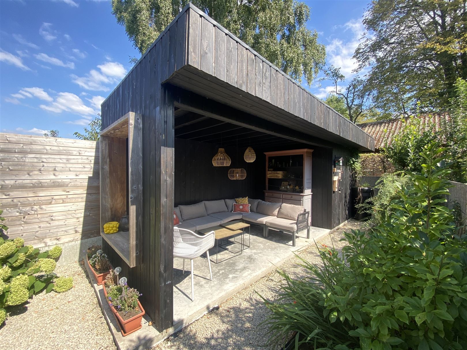 In de prachtige tuin kunt u steeds in alle rust en privacy genieten van het mooie weer. Aan de achtergevel van de woning werd een ruim terras voorzien. Achteraan in de tuin bevindt zich een praktisch tuinhuis met een gezellig overdekt terras om te genieten van het laatste zonnetje van de dag.
