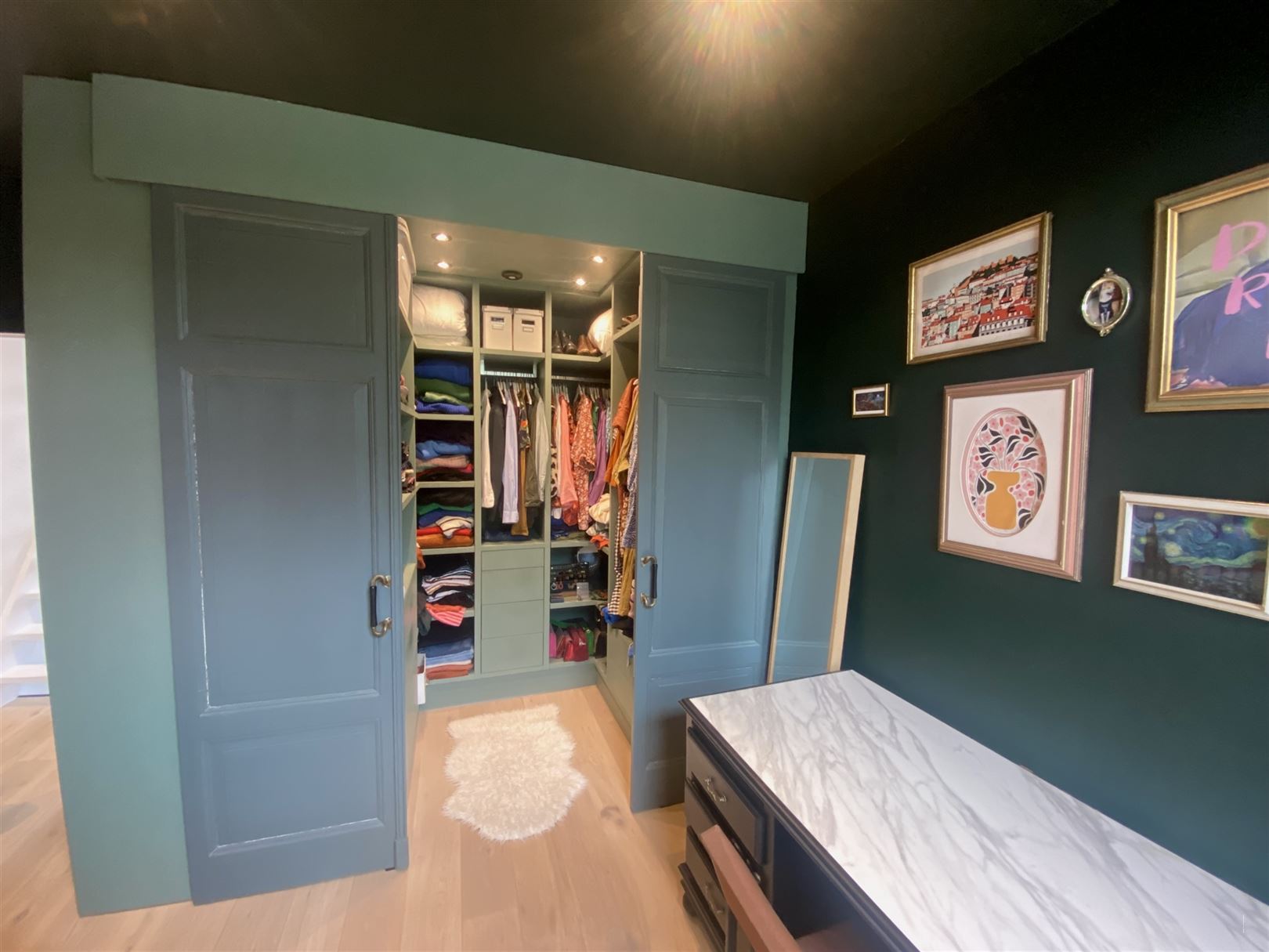 De nachthal op de eerste verdieping biedt toegang tot de ruime master bedroom met een op maat gemaakte dressing. Daarnaast bevindt zich de badkamer, uitgerust met inloopdouche, dubbele lavabo en een extra toilet.