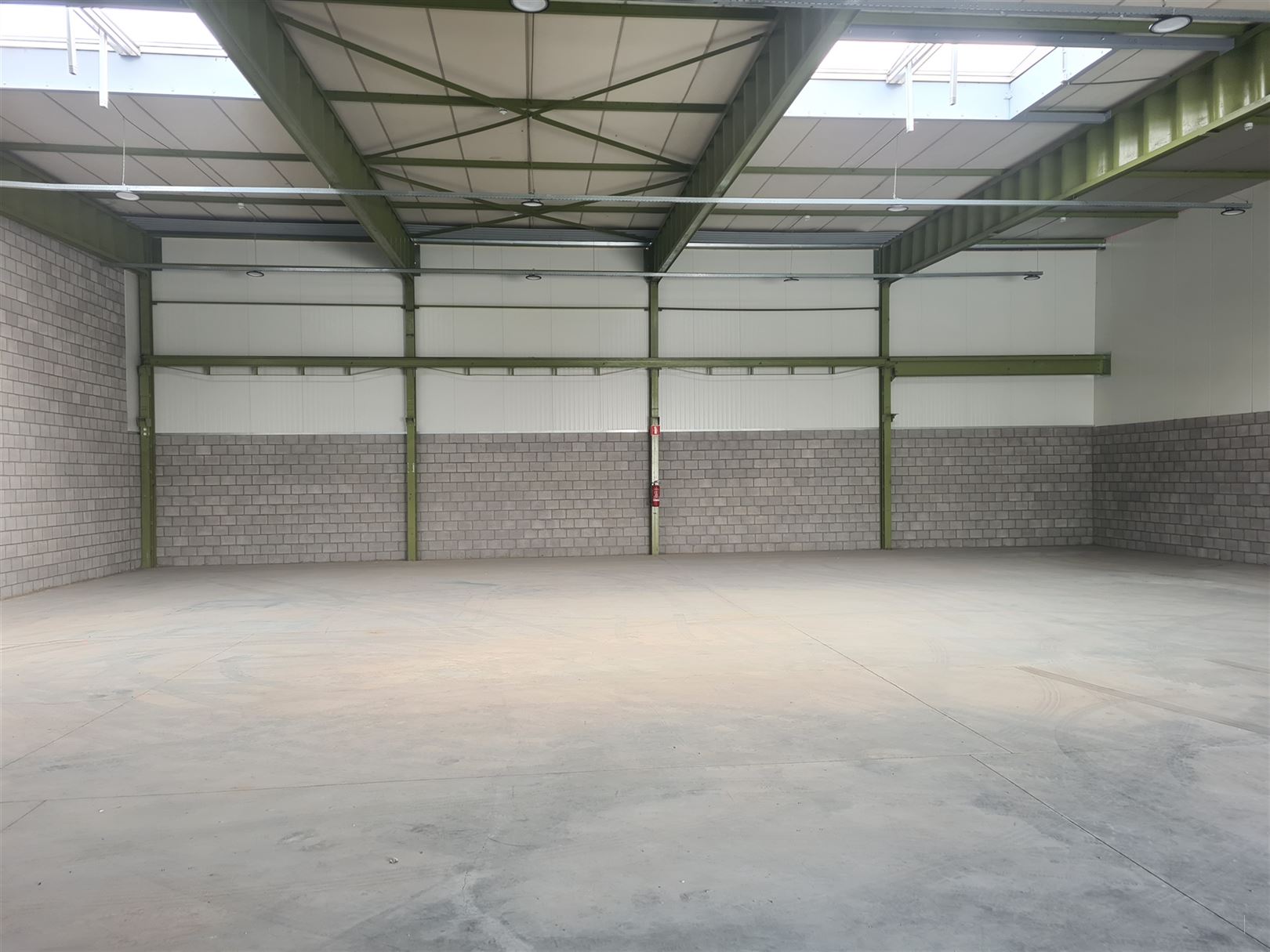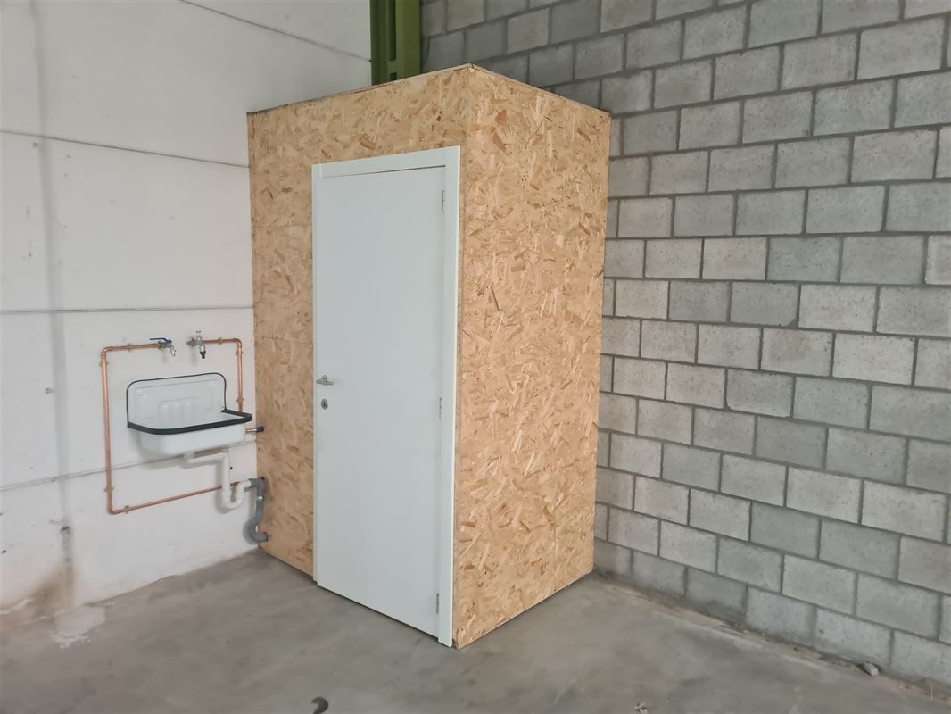 Voorzien van een hoge toegangspoort (4m, bediening via domotica) en beschikt over een vrije hoogte van 6m.
